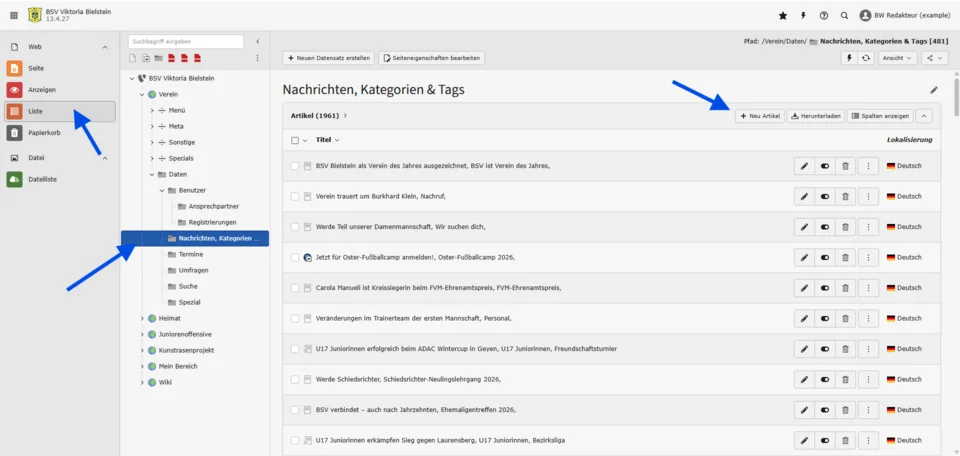 Um einen neuen Artikel anzulegen, klicke auf Neu Artikel.